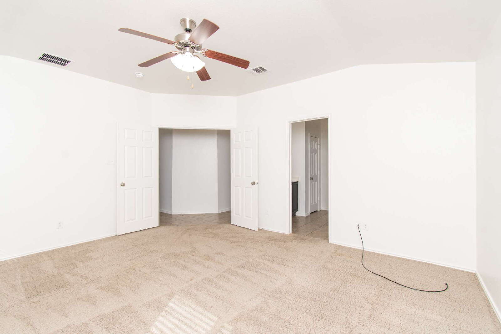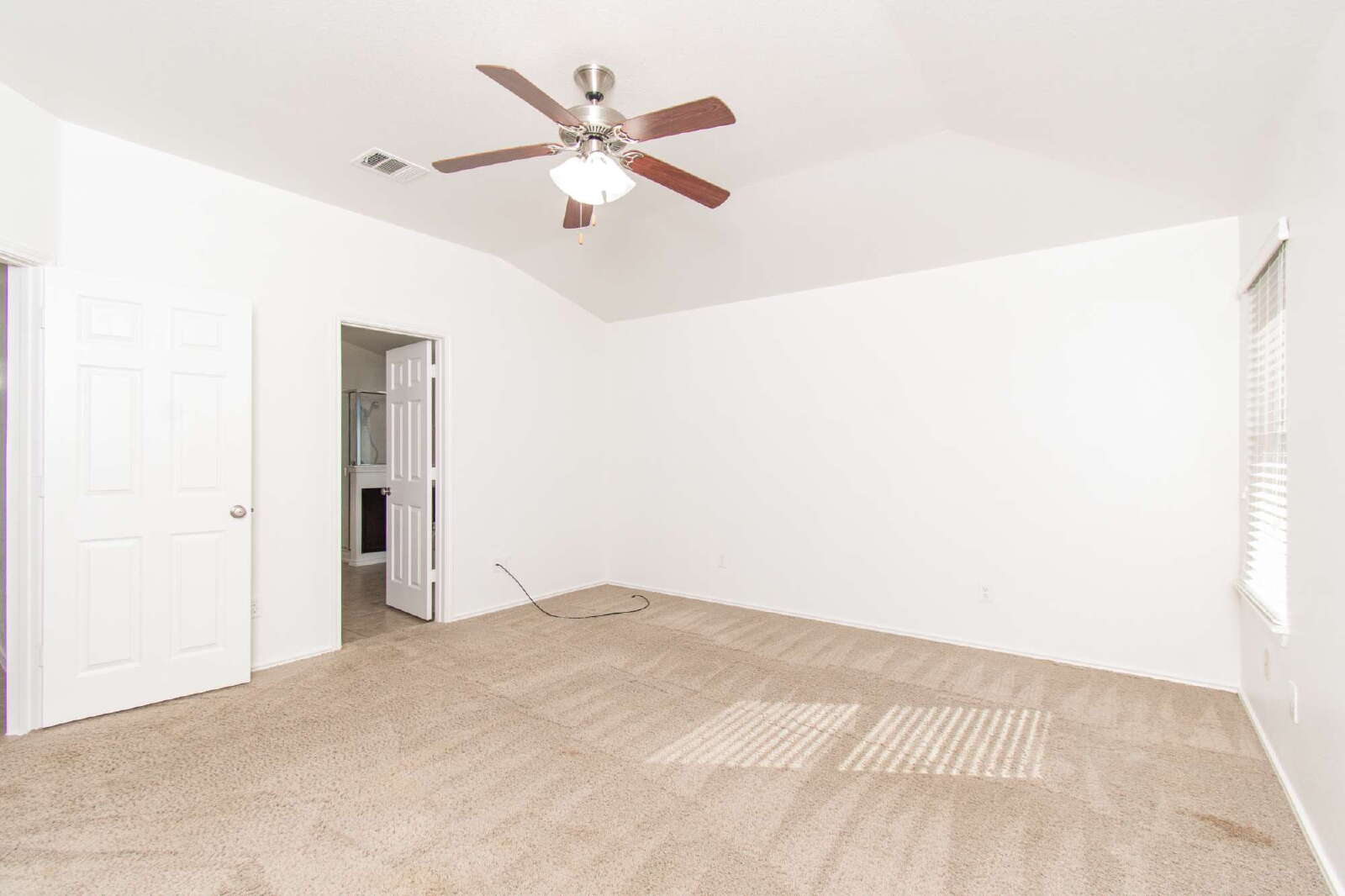 This amazing home boasts a kitchen designed with a breakfast bar, custom cabinets, granite countertops, a pantry, recessed lighting, and stainless steel appliances. The rooms are comfortably sized, while the primary bedroom offers a private retreat with a separate shower, garden tub, and separate vanities. The privately fenced backyard is perfect for outdoor enjoyment, and the attached garage at the front provides added convenience.