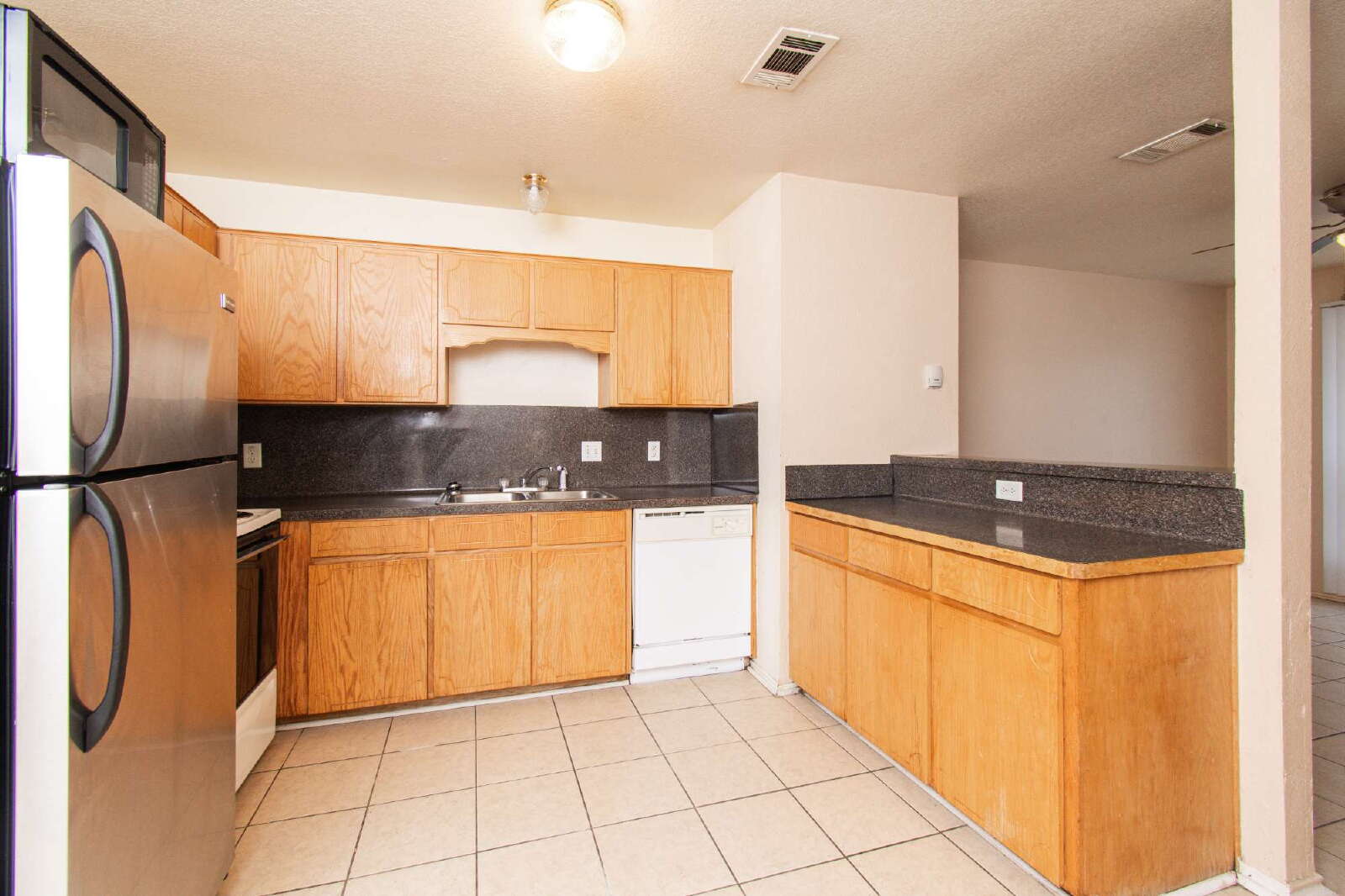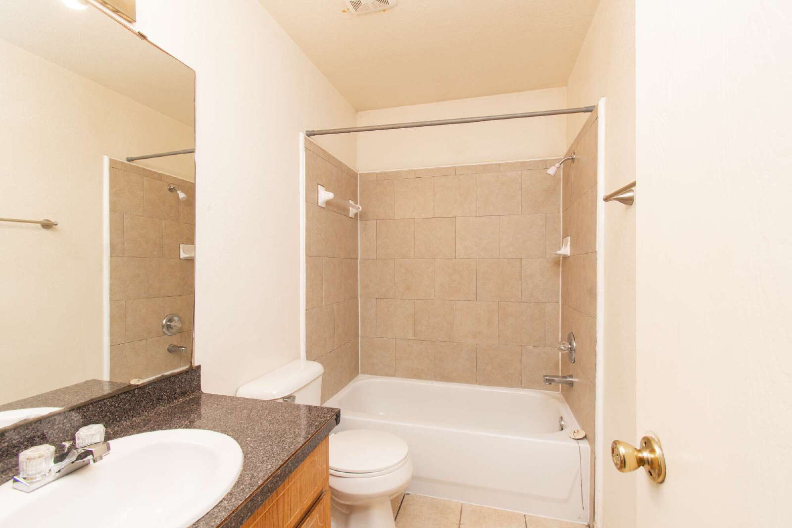 This inviting unit features a well-appointed kitchen complete with custom cabinets, a convenient breakfast bar and essential appliances. A dedicated laundry area adds to the functionality of the home. The primary bedroom includes a shower/tub combo and a vanity, offering comfort and convenience.
