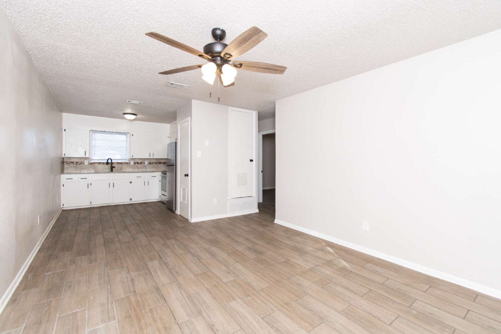 This charming home features a nice and cozy livingroom. The kitchen is equipped with custom cabinets and essential appliances, offering both functionality and style. The primary bedroom includes a shower/tub combo and a single vanity for everyday comfort. Enjoy the open backyard, perfect for outdoor relaxation or entertaining.